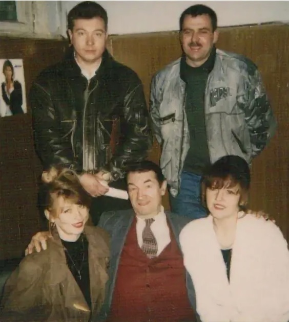 Девушки из группы «Комбинация» на выездном концерте, с поклонником, 1990-е годы.
