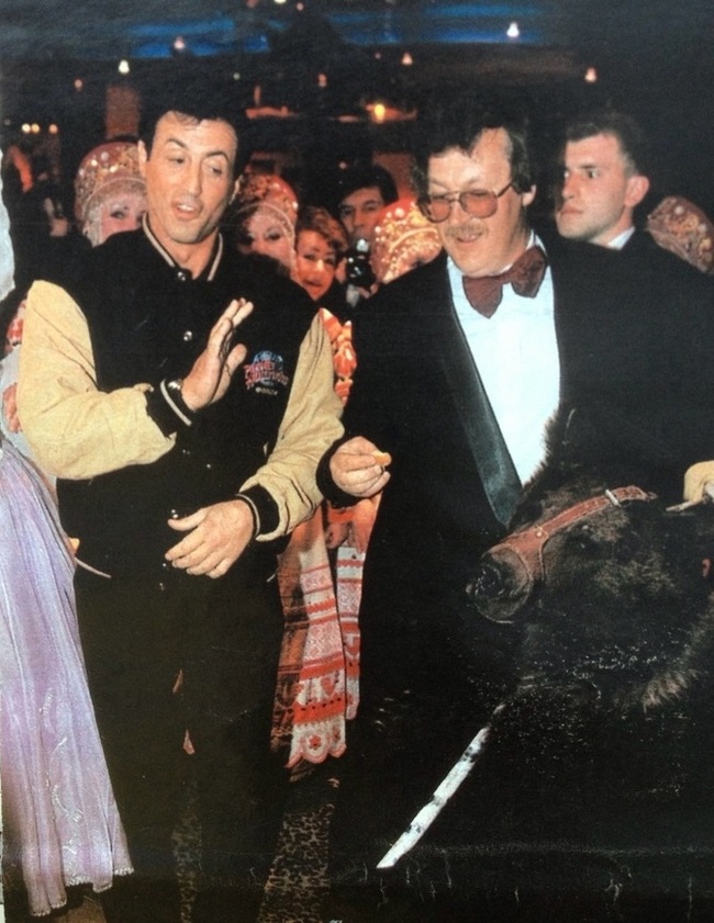 Сильвестр Сталлоне отказывает в совместном фото с медведем. Россия, Москва, 1997 год.
