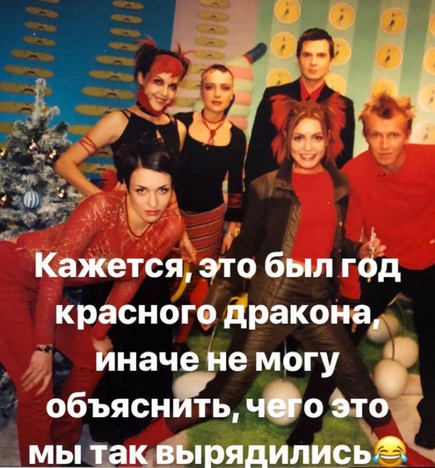 Ольга Шелест, Тутта Ларсен, Александр Анатольевич. Нижний ряд (слева направо): Лика Длугач, Татьяна Геворкян и Антон Комолов. Фото из соц сети Ольги Шелест.