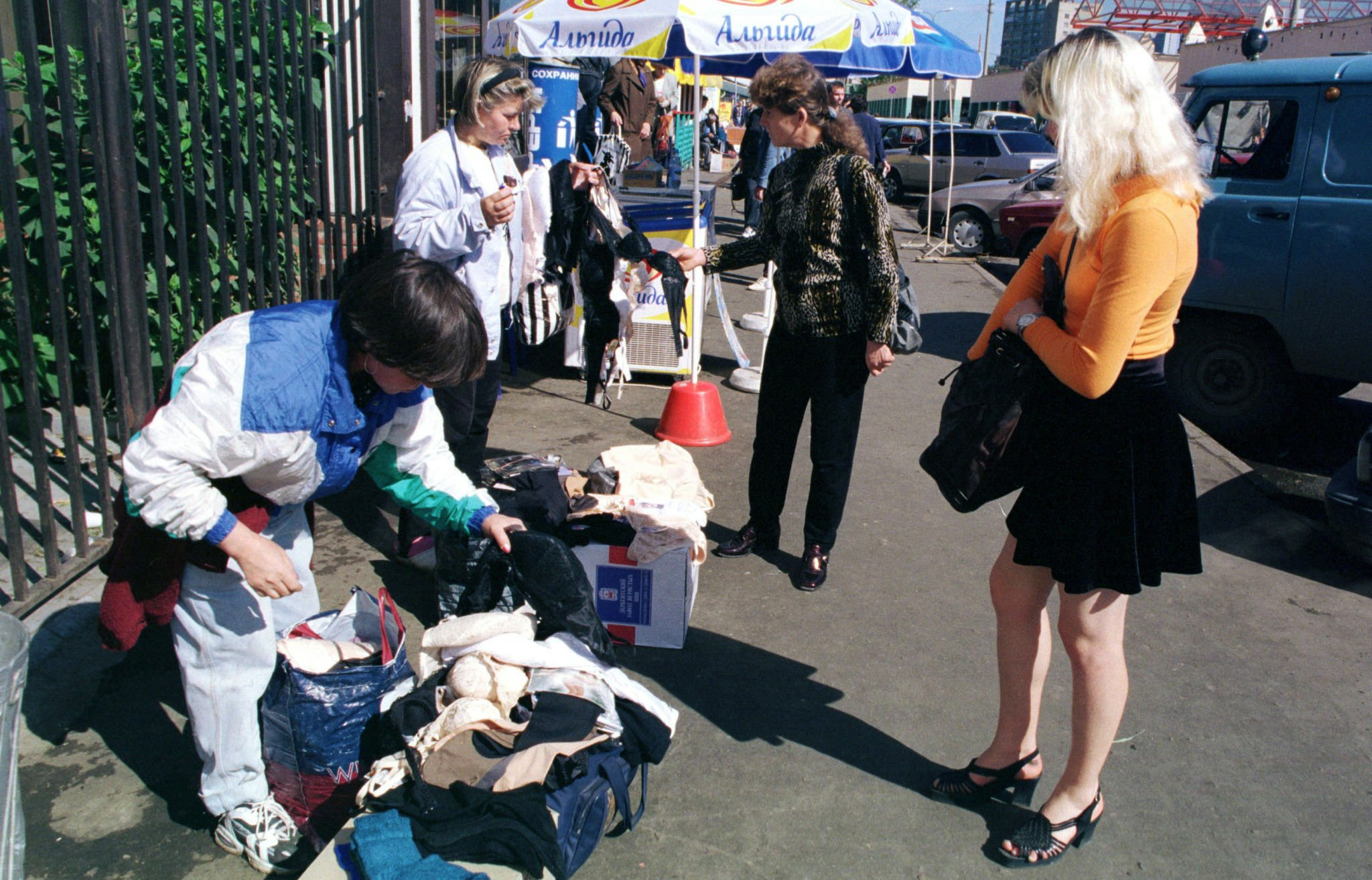 Уличная торговля у Киевского вокзала в Москве, 1998 год.
