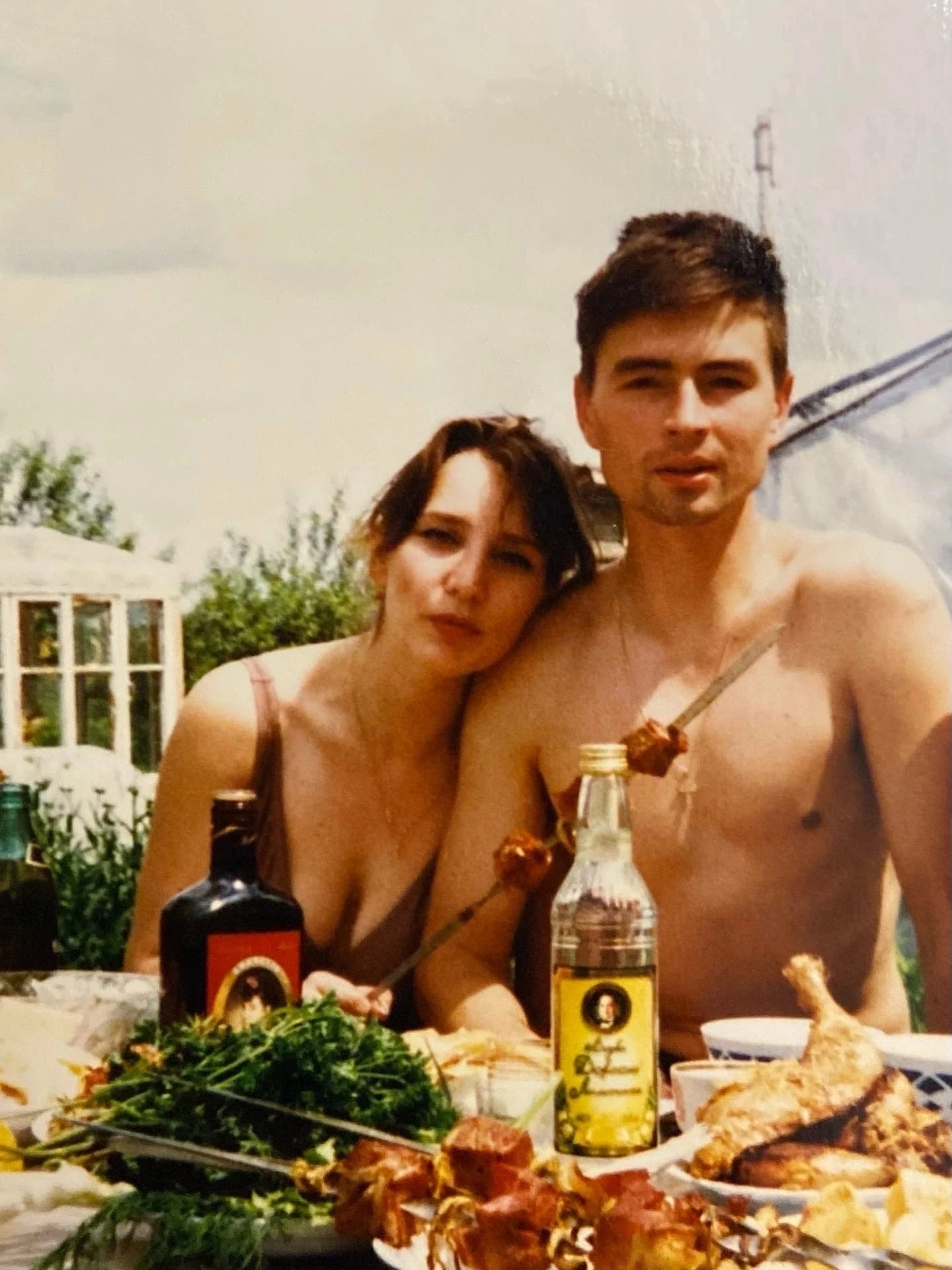 Шашлыки на даче под водочку «Довгань». Россия, 1990-е годы.