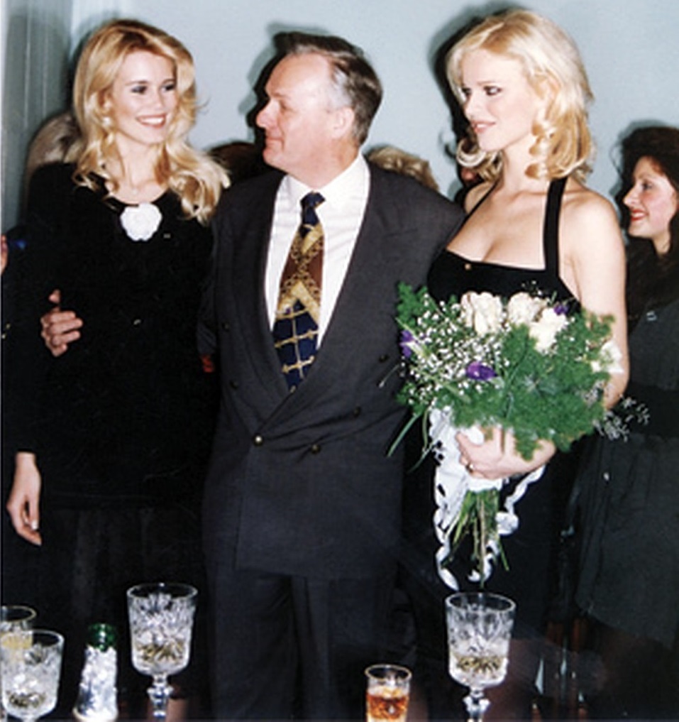 Мэр Санкт-Петербурга Анатолий Собчак обнимает супермоделей Клаудию Шиффер и Еву Герцигову, 1995 год.