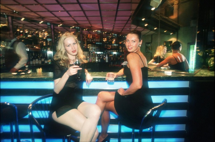 Девушки сидят в баре клуба "Up & Down". 25 июля 1997 год.