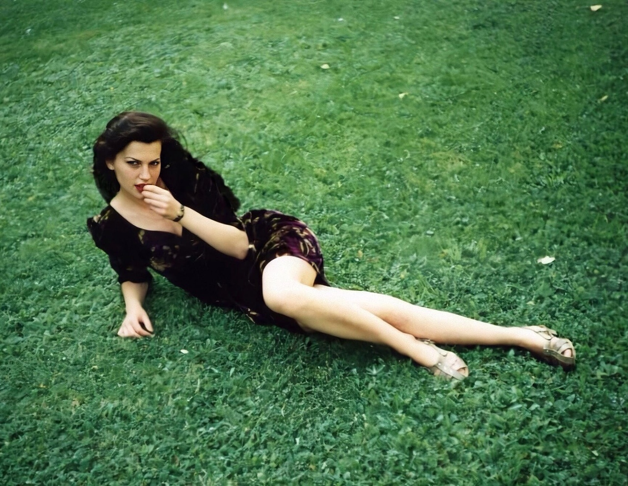 Девушка позирует на траве. Россия, 1994 год.