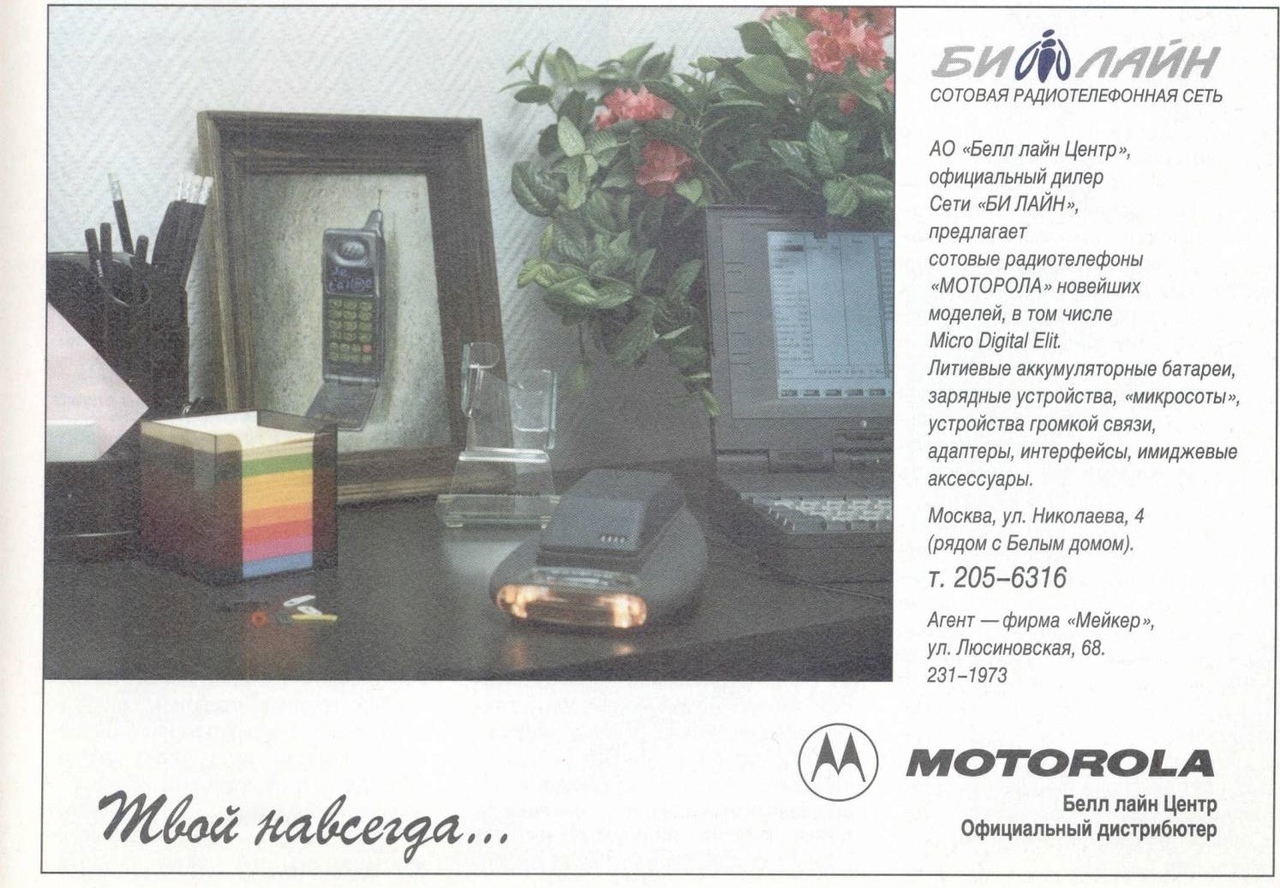 Реклама радиотелефонов от «Билайн», 1998 год.