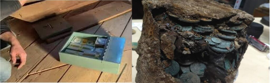Сюрприз в стене дома поджидал семейную пару из США. В купленном особняке супруги затеяли ремонт, во время которого обнаружили тайник с жестяными контейнерами. Вот только оказались в них не сэндвичи, а пачки с долларами, в числе которых были редкие экземпляры. Естественно, послу шума в СМИ на клад начали претендовать бывшие хозяева дома. Спор закончился в суде.