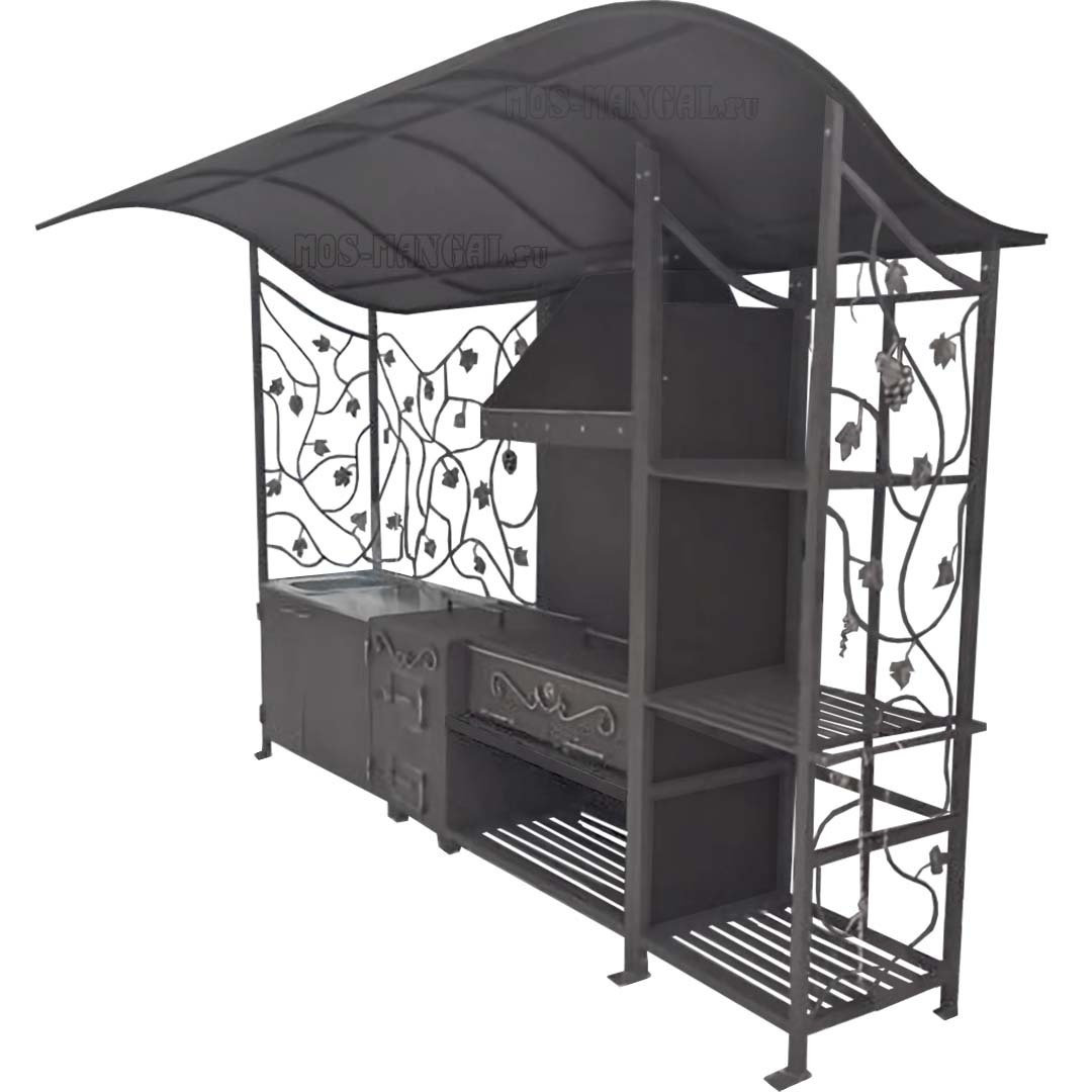 Мангал хороший. Двойной. Половина сам мангал, вторая- коптилка. Исполнение строгое, крышки закрываются, кованые ручки, есть немного финтифлюшек, но общий вид- строгий минимализм.