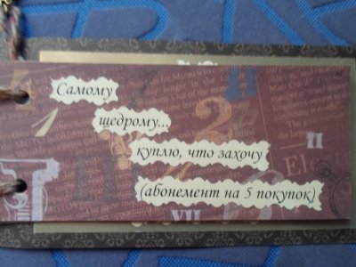 И не все желания сводятся к жратве, траху и жратве.) Как пример один из чеков, "Куплю что захочешь (абонемент на 5 покупок)".