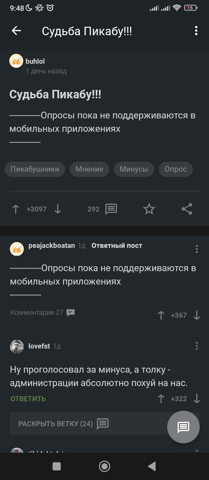 5 Vitil Интересный пост 2 года назад В мобильном приложении, Пикабу стал познавательный. И сиди додумывай по комментариям о чем там голосуют. [моё] Пикабу Комментарии на Пикабу Скриншот Приложение Пикабу Не баг а фича Длиннопост Мат Ещё 0