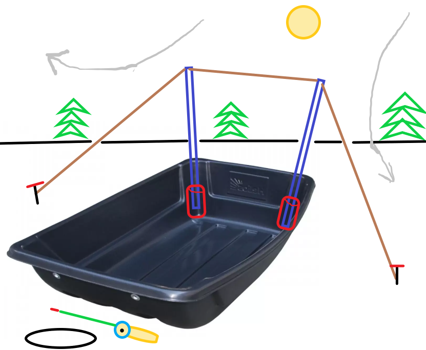 Расположение стоек можно и вдоль борта саней сделать по идее, шире получится барьер, но не перевернет ли при 5-10 м/с ветре?