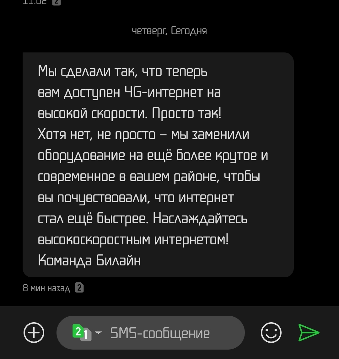 Сегодня приходит SMS от Билайн:
