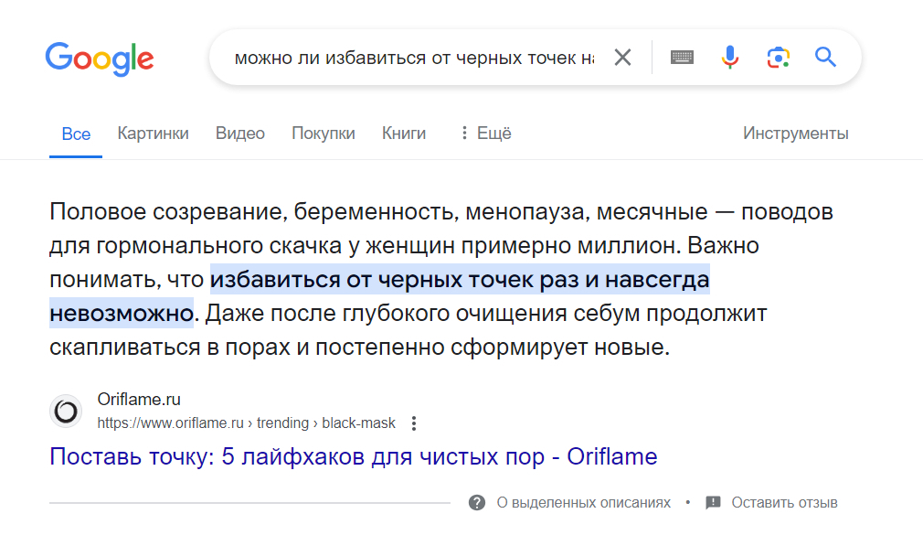 Сделал выборку из гугл браузера, по поводу что предлагает интернет по поводу черных точек на лице.