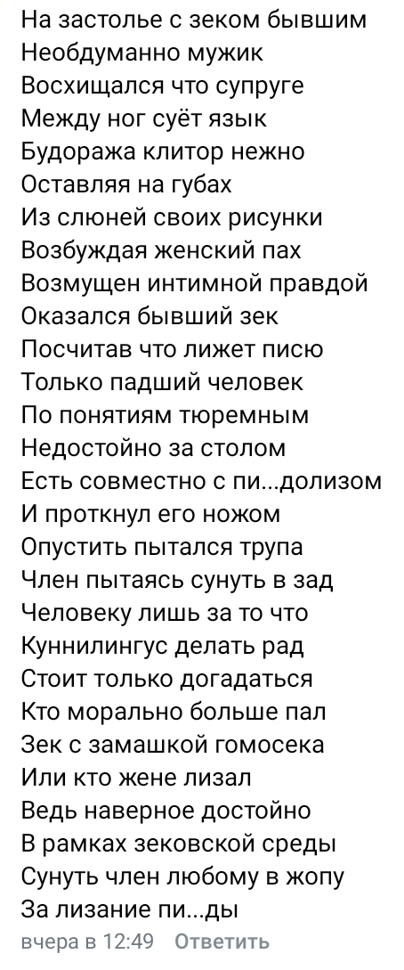 Как-то раз написал мне парень. Познакомились, поболтали и дошли до того, кто чем занимается. Я на тот момент училась в универе и была общественным помощником при следователе в следственном отделе. Проходила там практику и задержалась. Было любопытно. Я ему всё это пишу, делюсь мечтами о том, как возможно однажды приду туда работать уже за деньги, и получаю в ответ какую-то дичь: "КАК ТЫ МОЖЕШЬ?! На зоне пацаны за людское сидят! Мусора твари! Ты тварь!". И он меня заблокировал.