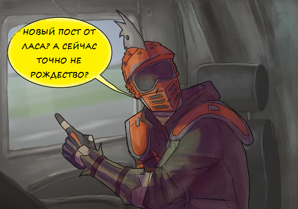 Ветер подул со стороны пещеры, принеся с собой зловонный смрад затхлого воздуха и килограммов пыли, поднятых с пола, куда давно не ступала нога человека. Следом за порывом воздуха из пещеры вылезло нечто и медленно поползло к компу. Что это? Монстр? Нет, Это Лас решил сделать пост.