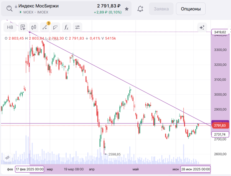 Но геополитика способна преподнести сюрприз: намёки Ирана на блокировку Ормузского пролива; самолёт ссудного дня США; поддержка хуситов.... Каша заваривается всё гуще. Так что уход нефти сильно выше и выстрел нашего рынка вслед за ней тоже не стоит сбрасывать со счетов.
