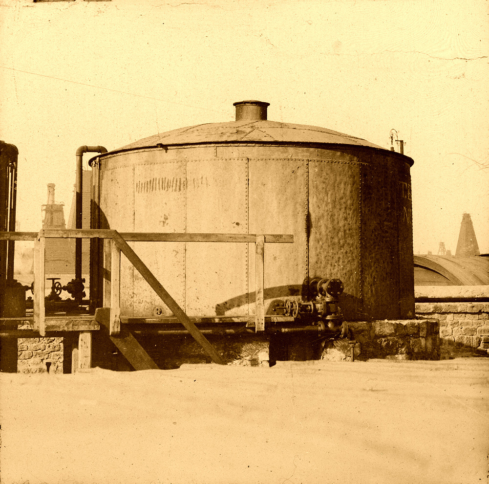 Здесь же, в Баку, Шухов разработал и построил первые в мире цилиндрические резервуары-нефтехранилища. До этого нефть хранили в земляных или каменных хранилищах под открытым небом. В США использовался более технологичный способ – нефть собирали в открытые металлические прямоугольные резервуары. Конструкция цилиндрических емкостей, разработанных Шуховым, позволяла использовать более тонкий металл в нижней части, и еще более тонкий в верхней части резервуара.
