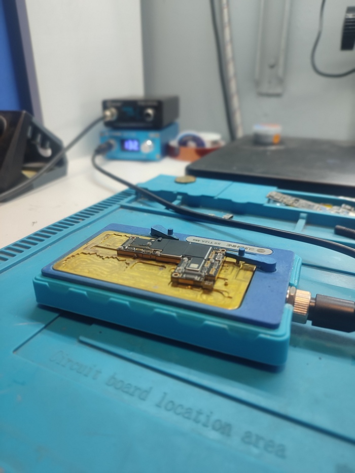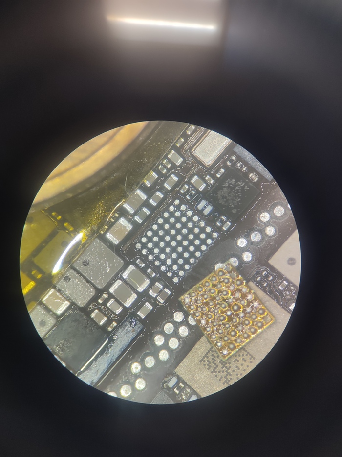 Заранее зачищаем все посадочные площадки на обеих платах, на это уходит +- 1 час времени. Пока чищу, поглядываю в программу для ремонта Borneo и смотрю как могут быть связаны эти две проблемы.