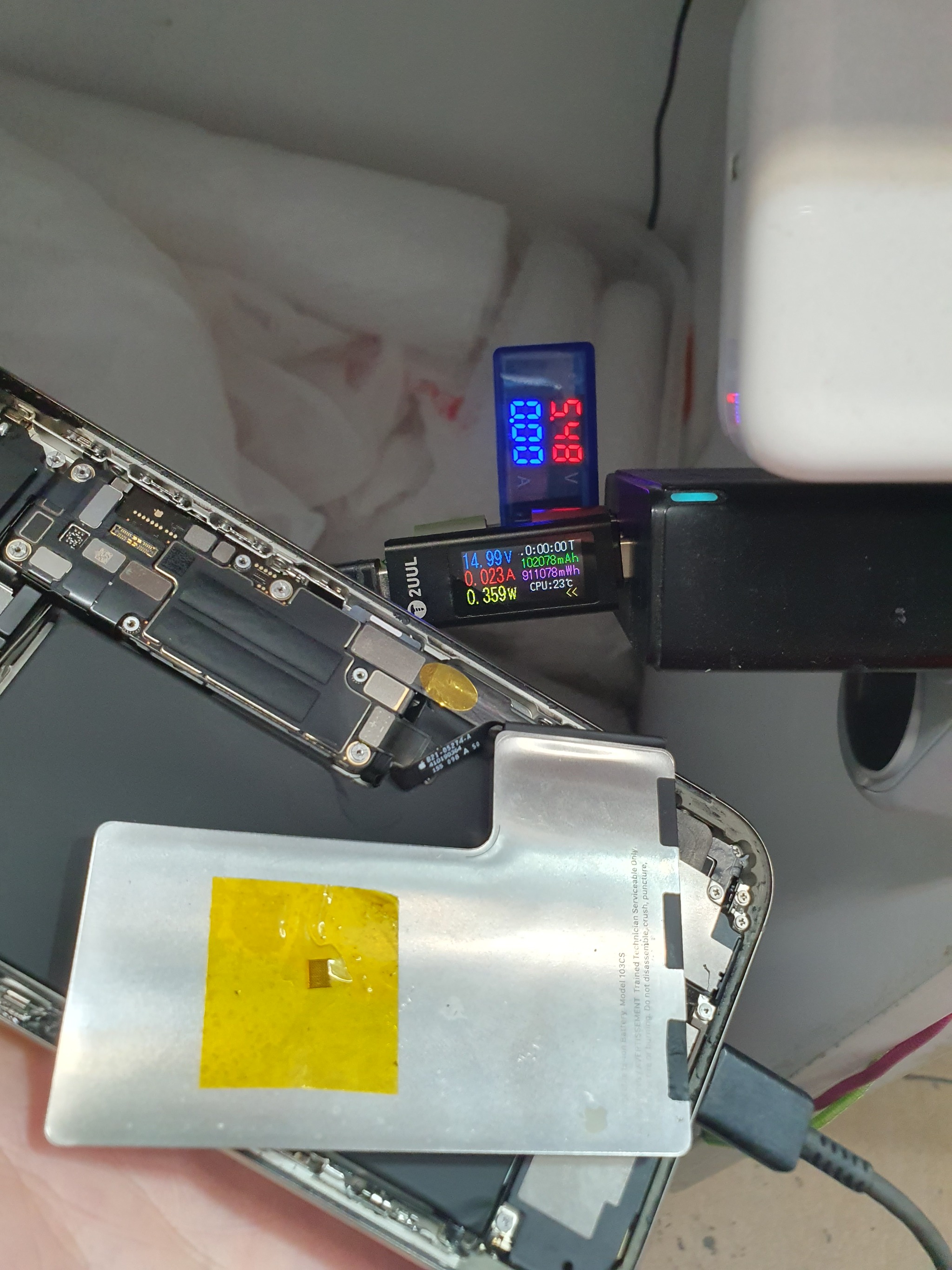 Там я уже истратил одного донора для комплекта микросхем всей цепи заряда (type-c, tigris, eeprom), но не взлетело и зная, что эти контроллеры очень боятся перегрева - решил проверить, не вшатал ли я их, так как после запайки ничего не запускалось.