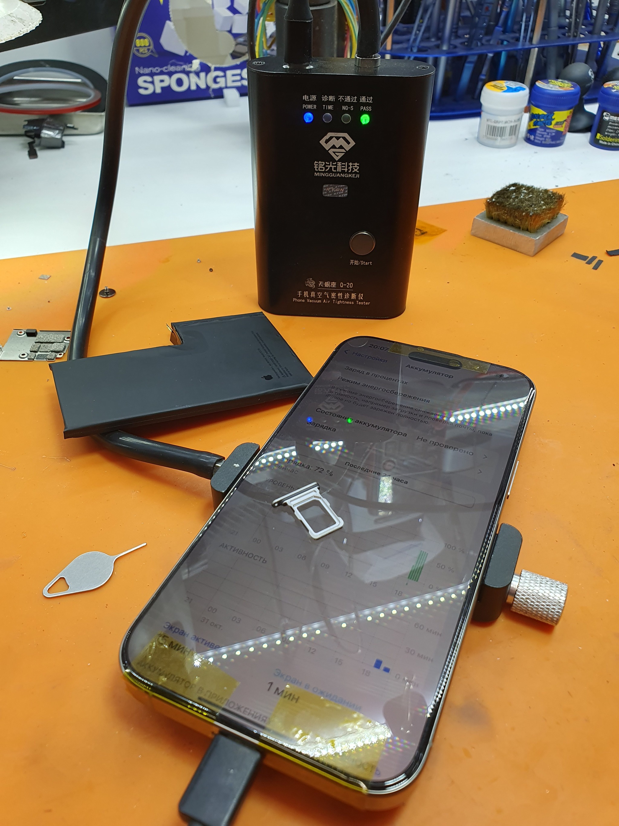 На проверку взял аккум от iphone 16 pro, который был в тот же момент на ремонте