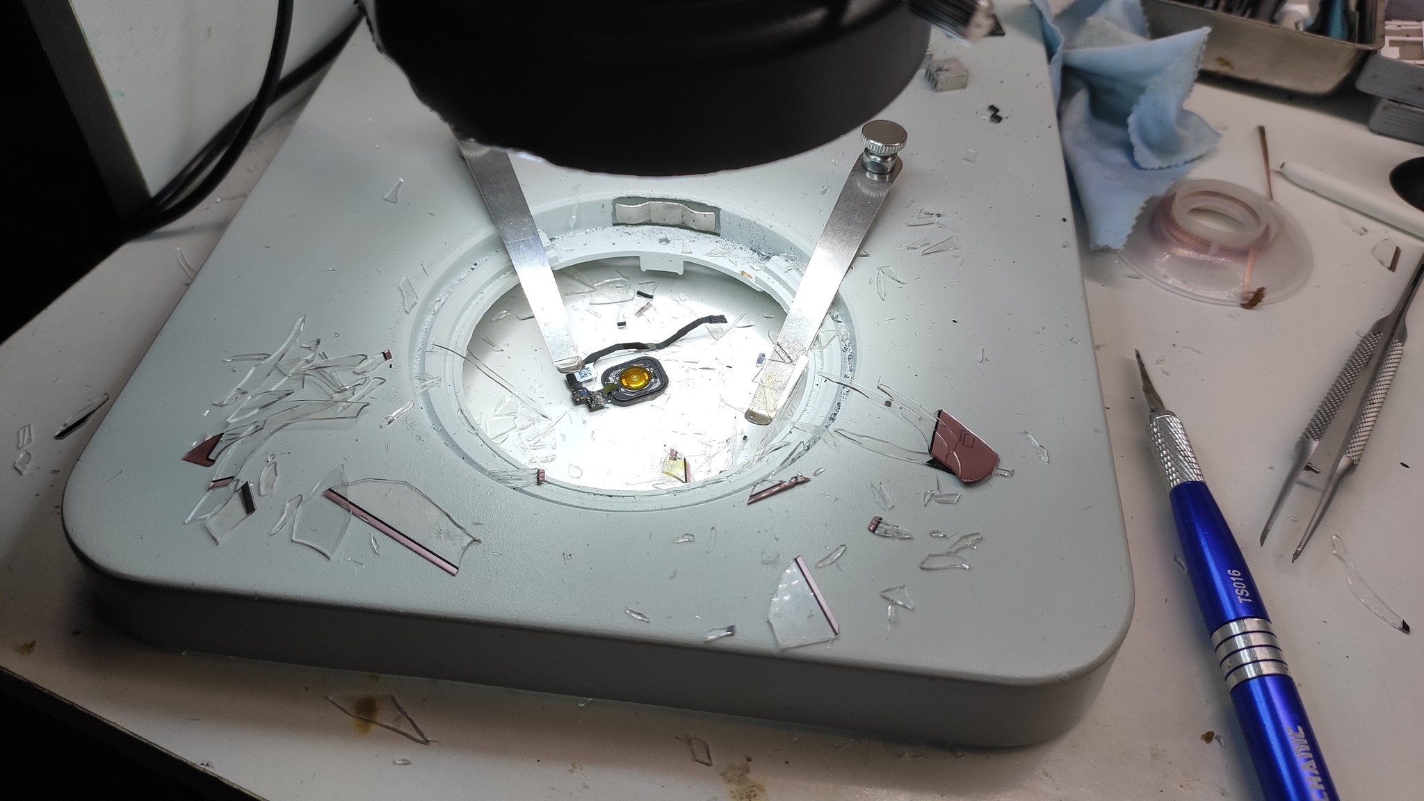 Дальше аккуратно подпаиваемся, я использую проводок из вибромотора, и заливаем ультрафиолетовой маской.