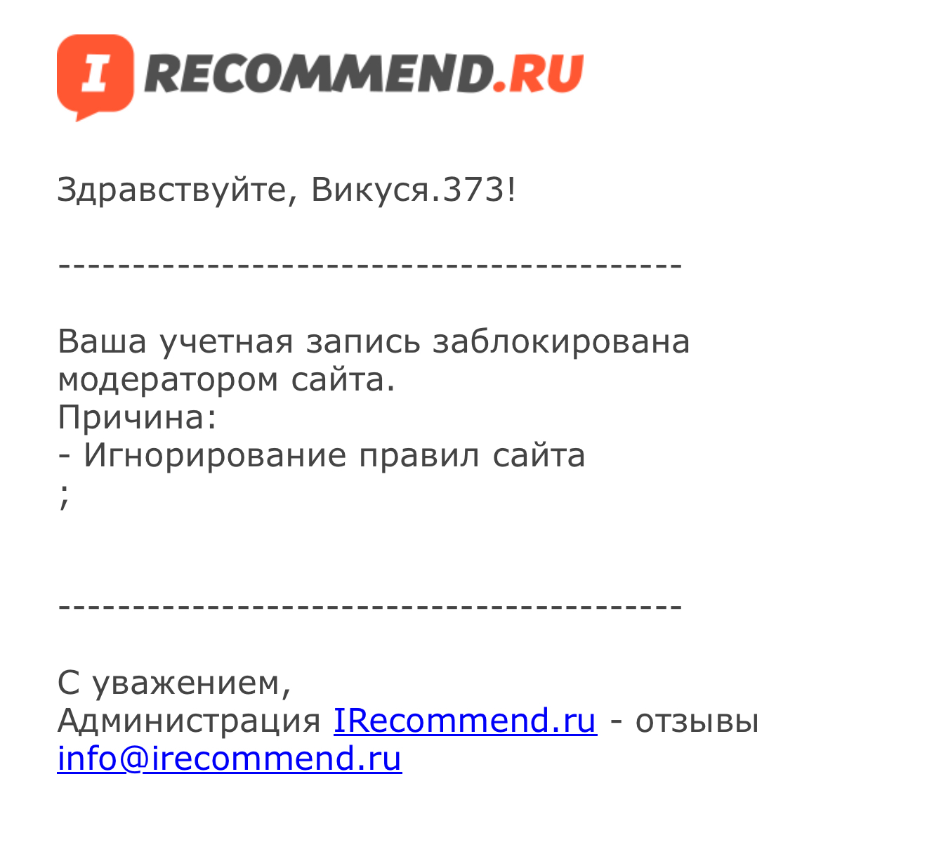 Кроме всего прочего, мне отключили возможность оставлять отзывы о платформе Irecommend после того, как я выразила негативное мнение о её работе. Это выглядит как попытка избежать критики со стороны пользователей и ограничить обратную связь. После этого начали ворошить все мои старые отзывы, снимая их с публикации даже тогда, когда они не нарушали правила. Это создаёт впечатление, что администрация активно скрывает или ограничивает негативную информацию о своём сервисе.