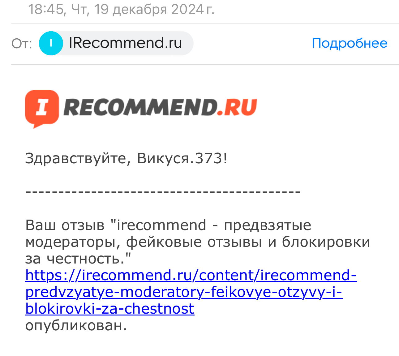 Irecommend - предвзятые модераторы, фейковые отзывы и блокировки за честность1