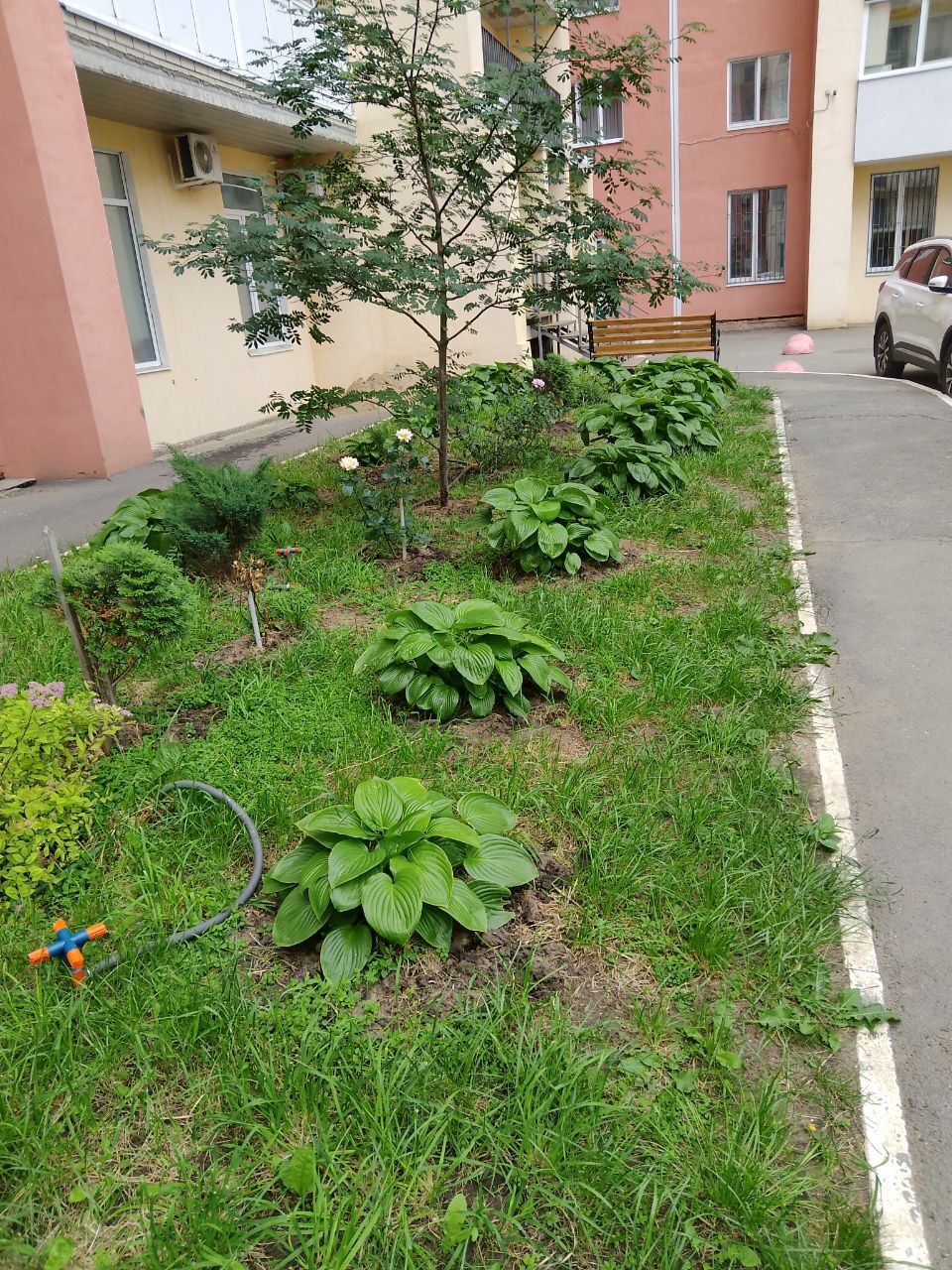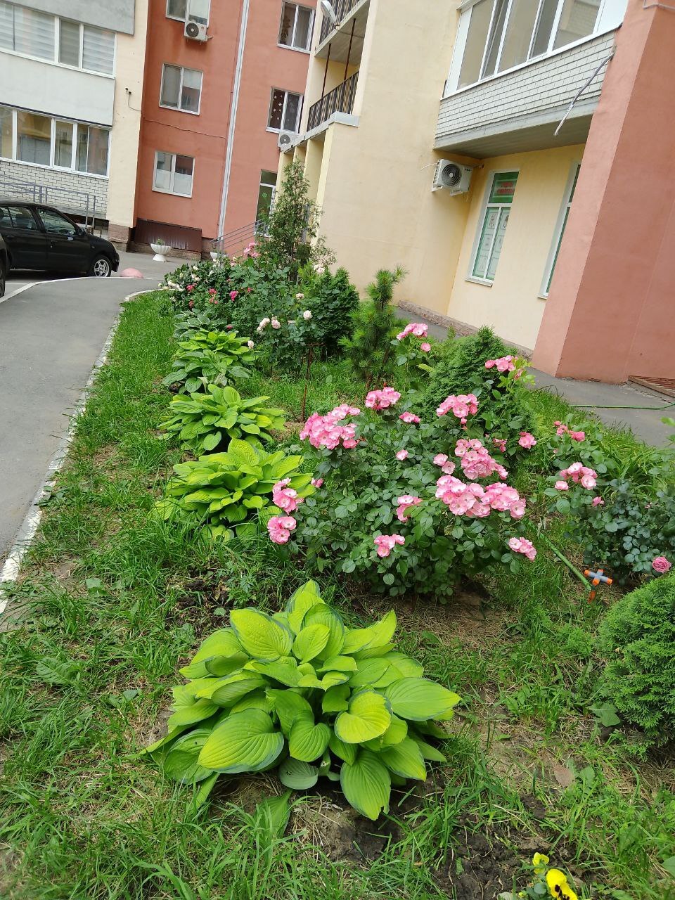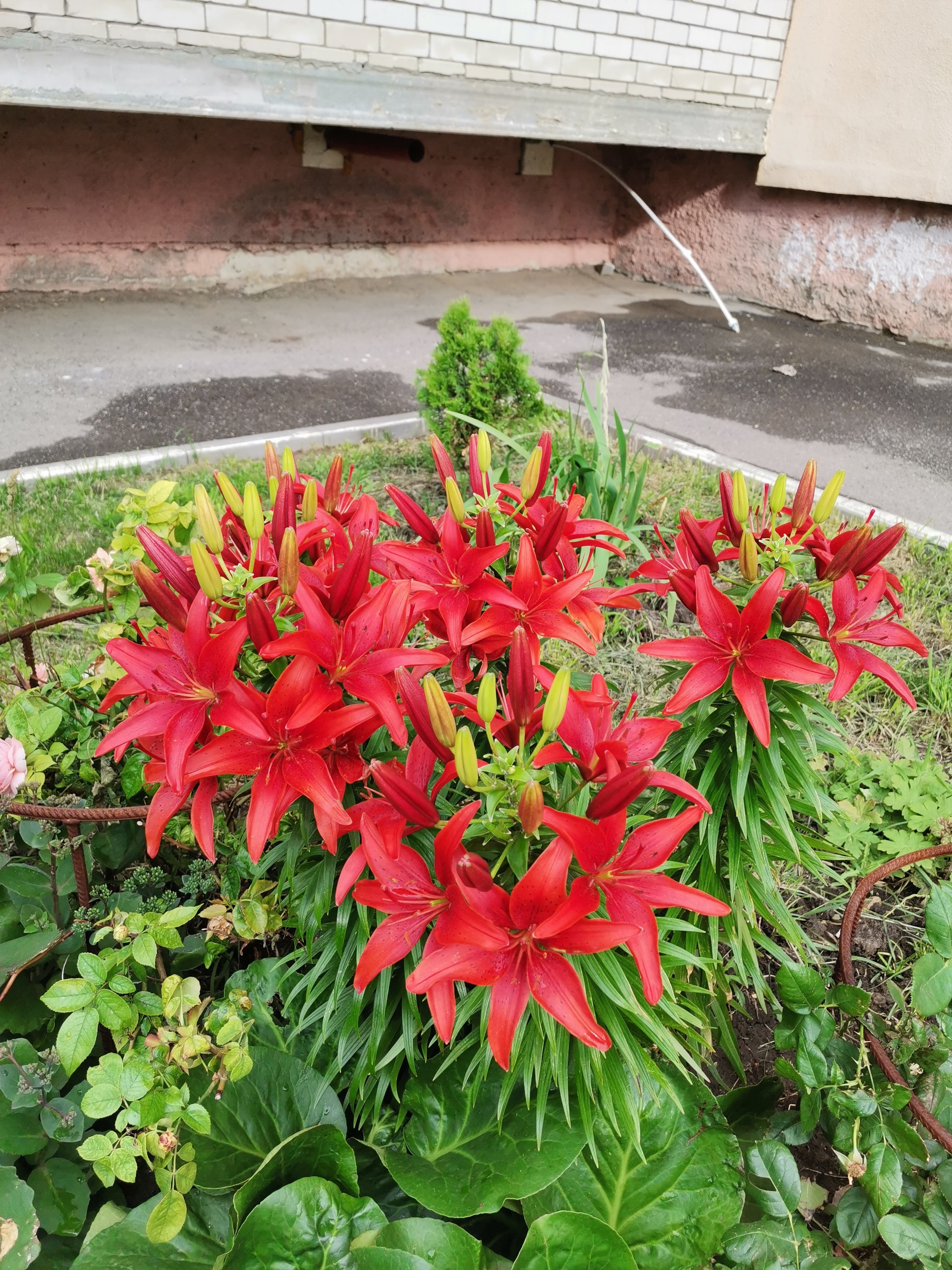 У меня перед подъездом глина, удобренная кирпичами. Ломом копали ямы, глину мешали с черноземом и конской подстилкой. Посадили всё. У нас растут розы, лилии, очитки, хосты, многолетние астры, ирисы, лилейники, барбарисы, папоротники, туи, куча разных деревьев.