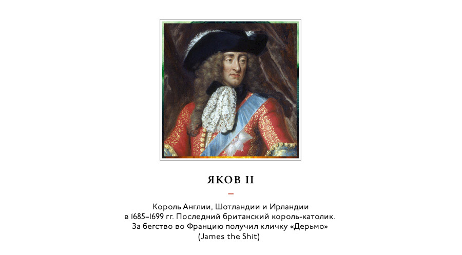 Британские монархи порвали с Папой Римским и создали своё особое христианство — без блэкджека, зато с монархом во главе церкви. Страна раскололась на протестантов-англикан (большинство) и католиков (незначительное меньшинство). Дело усугубляла политическая нестабильность: на трон попадали то венценосные католики, то не менее венценосные протестанты. Окончательную победу англикане одержали по итогам Славной революции с воцарением Вильгельма Оранского (в располосованных заградительными заборами городах Северной Ирландии до сих пор действует Оранжевый Орден, что-то вроде масонства для протестантов-лоялистов).