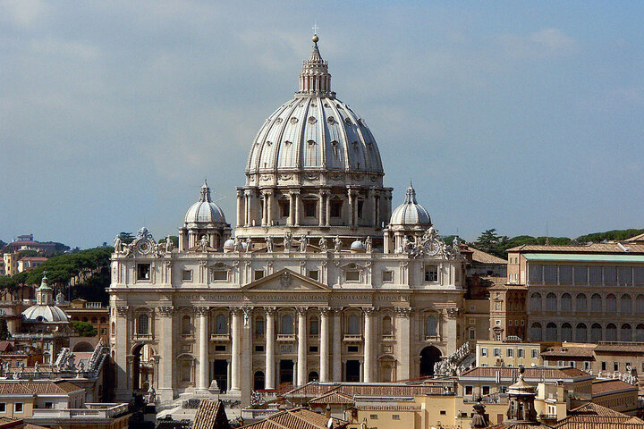 Святого Петра в Риме. Купол собора был закончен в 1590 году, позже проведена реконструкция фасада в 1607-1612 годах. Высота сооружения 136 метров. Исаакий малыш в сравнении с этим гигантом.