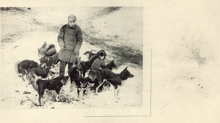 Труд мой, касаясь разработки самой полезной и обширной группы собак, — собак севера, дает мне на каждом шагу массу доказательств той громадной и незаменимой пользы, которую приносит человеку собака. На отдаленной окраине земного шара, в северной Америке, в суровой и угрюмой Аляске, сев. собака уже многие сотни лет служить эскимосу и сев.-американскому индейцу. Первым она сопутствует и на полярные острова, и на берега Баффинова залива. Она же сопутствует человеку в Гренландии.