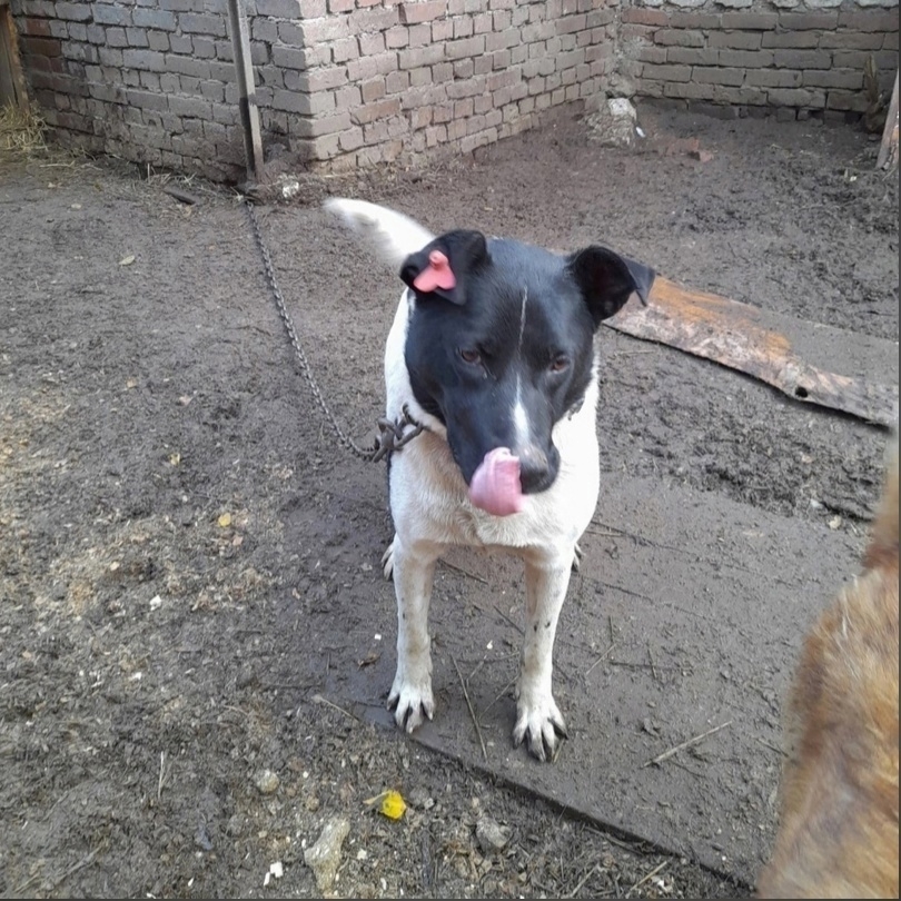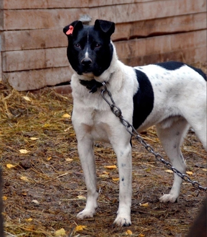 Молодой кобель, мышечный, сильный, игривый, добрый к людям.