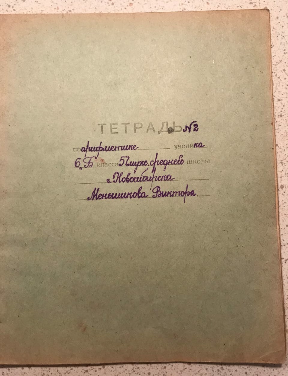 Дело в том, что у меня был дедушка Сергей Меньшиков, а у него был брат Виктор Меньшиков, и жили они в прекрасном городе Новосибирске, когда я увидела фото, я сразу спросила у мамы не наш ли это дедушка Витя, на что получила утвердительный ответ. Я стала искать источник фотографии, но не смогла найти того человека, который мог владеть данным дневником. Вся наша семья была бы счастлива найти его, т.к. школьные тетради Меньшикова Виктора у нас хранятся, как памятные, семейные. Фото тетрадей прилагаю.