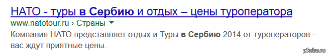 9 mr0ustas 11 лет назад Искал туры в Сербию ... Стало как то грустно и обидно. Гугл выдал по запросу [моё] Сербия НАТО Путешествия