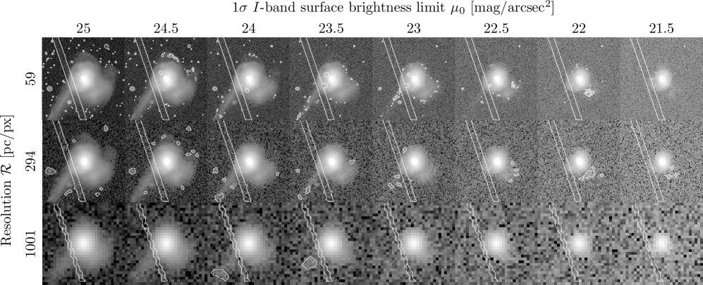 Уменьшение глубины и разрешения изображений галактики NGC 17 приводит к потере слабых структур, таких как протяженный приливной хвост, и затрудняет выявление внутренних возмущений.