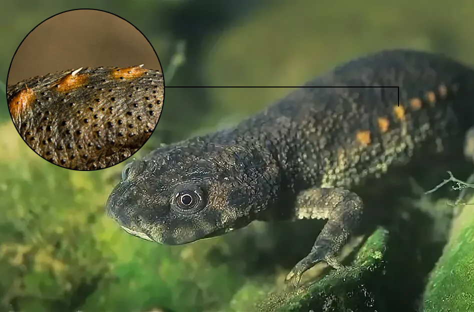 Перед вами, друзья, иглистый тритон, и он проделывает такой же трюк со своими рёбрами. Только пошёл он в этом вопросе ещё дальше – его рёбра ещё и ядовиты!