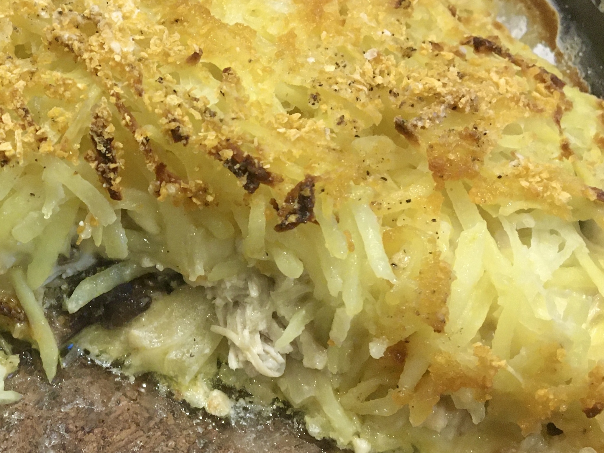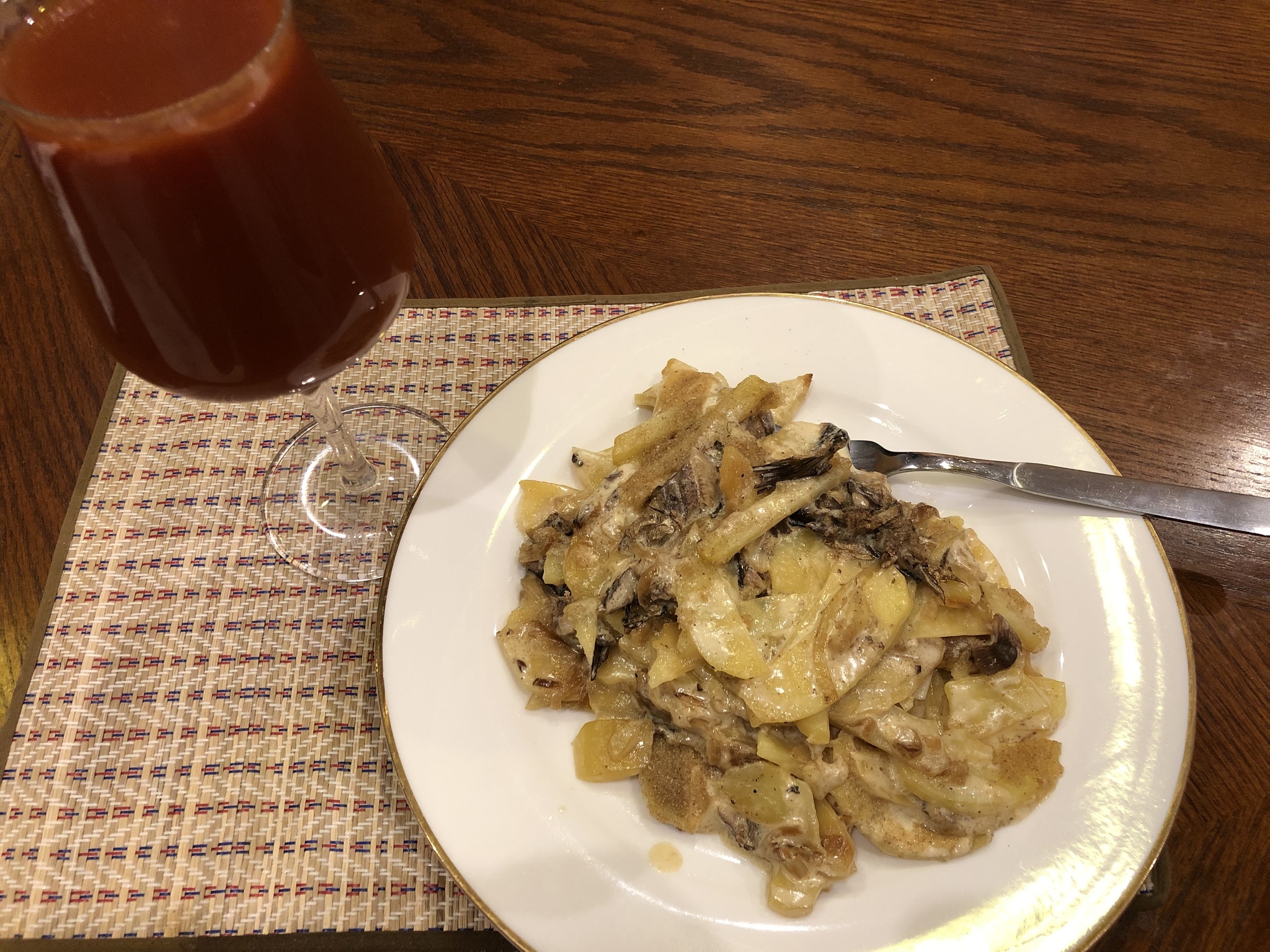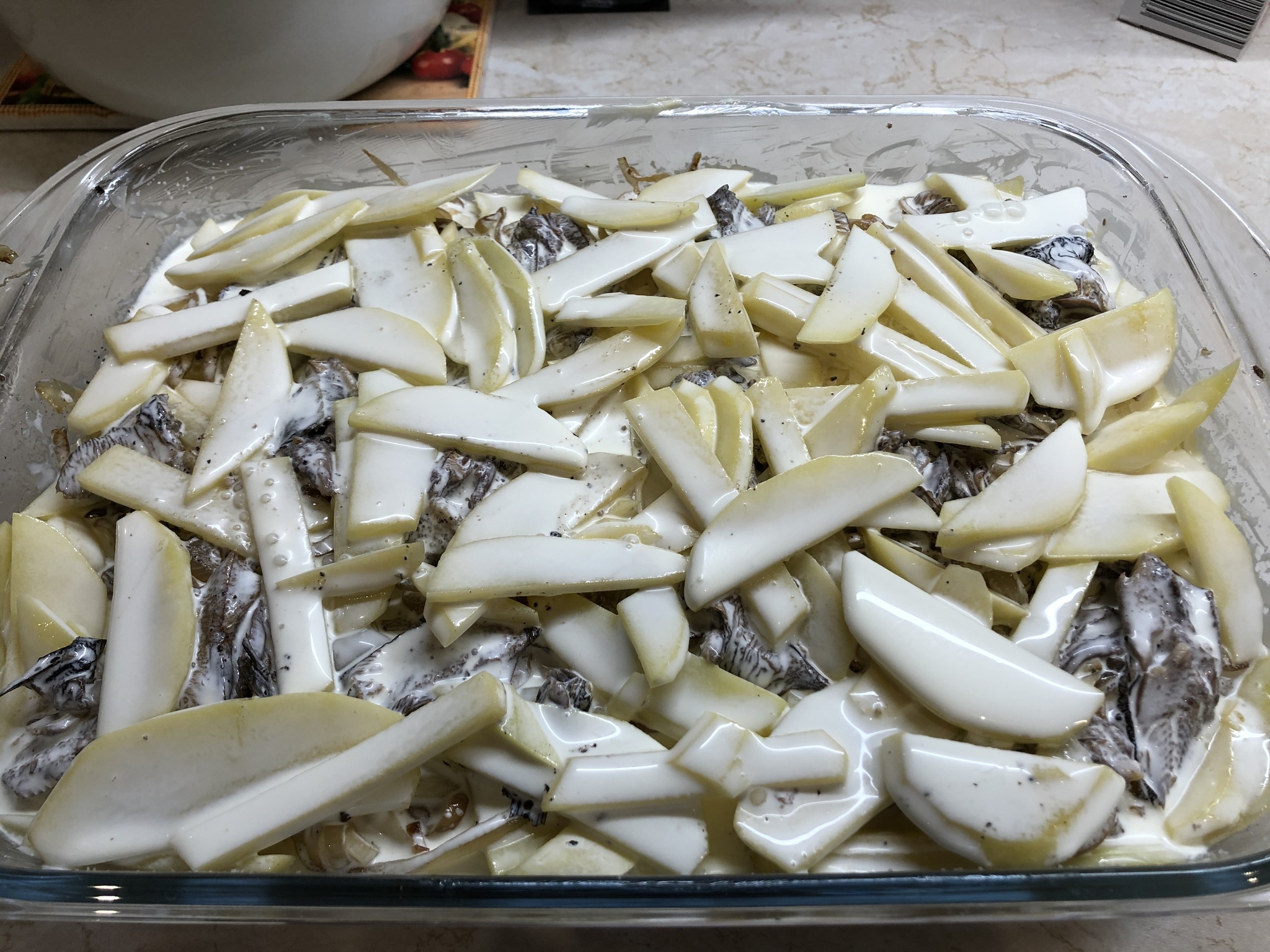 В запеканке вкусно ощущалась картошка, которая, несмотря на обилие сливок, превратившихся в соус, не размякла и хорошо держала форму. Соус, что видно по фоткам, не вытек и держался на картошке. А еще здорово похрустывали сухари на корочке.