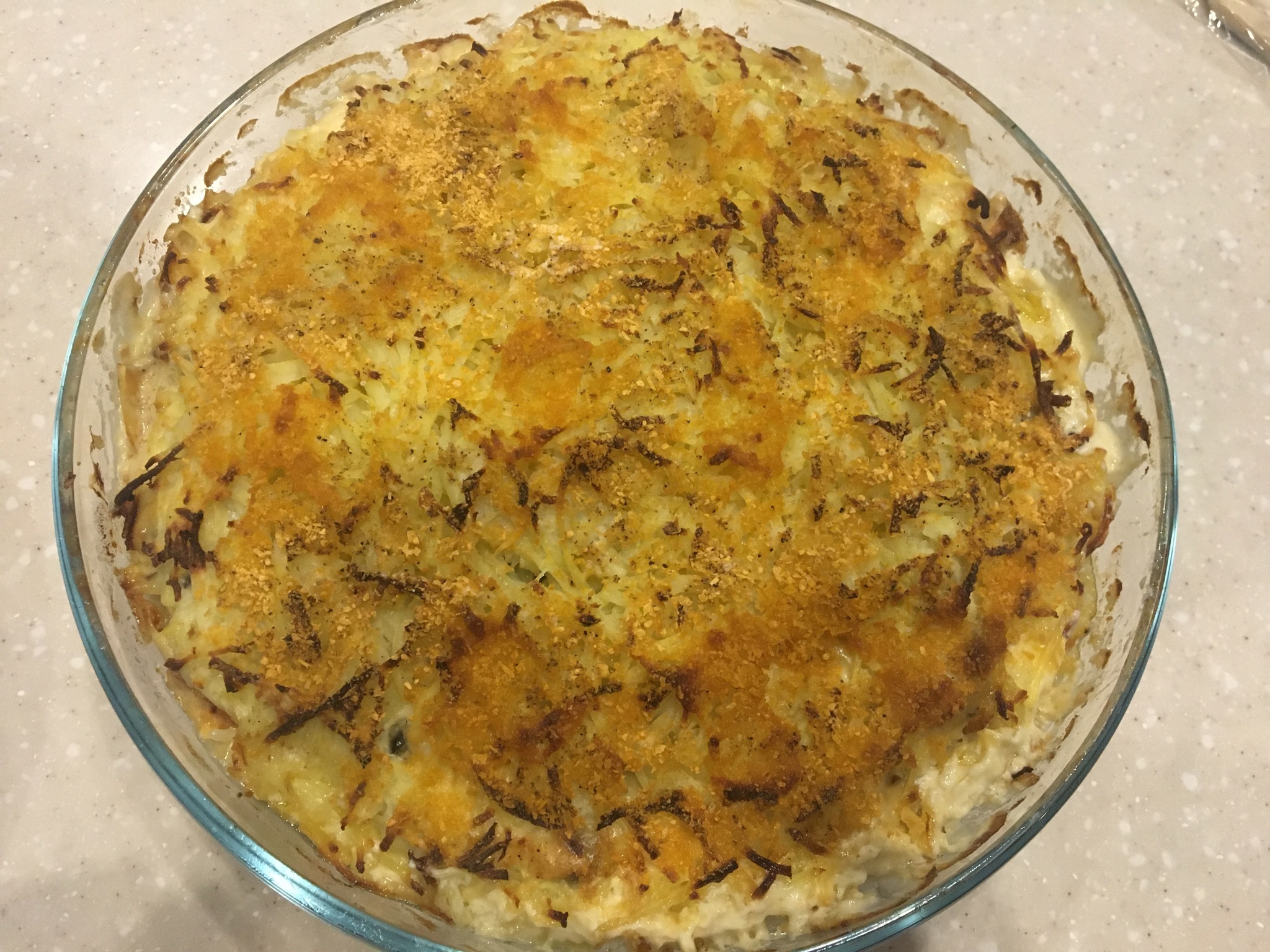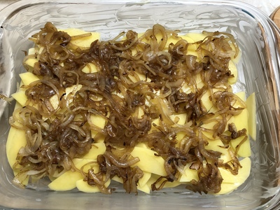Готовится все элементарно, если ускорить процесс нарезания теркой. А так- лук поджарил, картошку потер- все уложил, пролил, запек….profit.