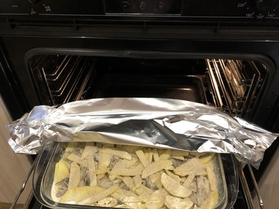 Рыба- я прочел об использовании привычных нам шпрот в этом блюде и решил протестировать этот вариант. Делал и с анчоусами и со шпротами. Отдельно в разных формах.
