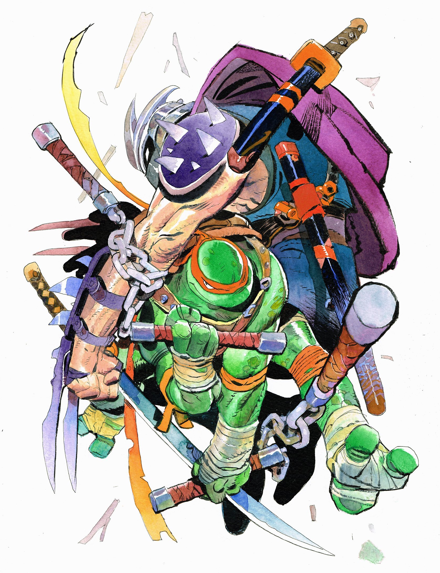 Майк против Шреддера. Акварель и тушь на бумаге. Знаете, это то самое увлекательное развлечение, которое ваш ИИ вам никогда не даст.
