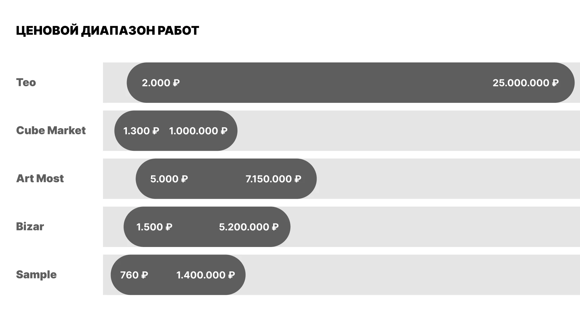 Важно понимать, что часть рынка по-прежнему скрыта — через галереи, аукционы и ярмарки проходят произведения из среднего и высокого ценового диапазона, а вот доступный сегмент завязан на покупке работ напрямую у художника, без посредников. По данным исследования Агентства креативных индустрий, теневой сектор составляет от 24% до 33%. Это отражается не только на том, сколько налогов уходит в казну — неизвестен объем рынка. А без такой базовой информации сложно прогнозировать и строить бизнес «по-взрослому». Можно вложить несколько миллиардов в технологический сервис мечты, заточенный на креативный сектор, а он не отобьется, потому что годовой оборот всего рынка будет примерно того же размера.