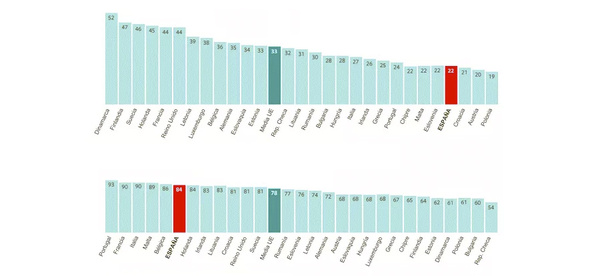 Таблица показывает результаты социологических опросов. Верхняя часть — процент женщин, утверждающих, что они подверглись гендерному насилию. Нижняя часть — процент женщин, считающих, что гендерное насилие является распространенной проблемой. По таблице видно, что испанские женщины преувеличивают проблему гендерного насилия в стране
