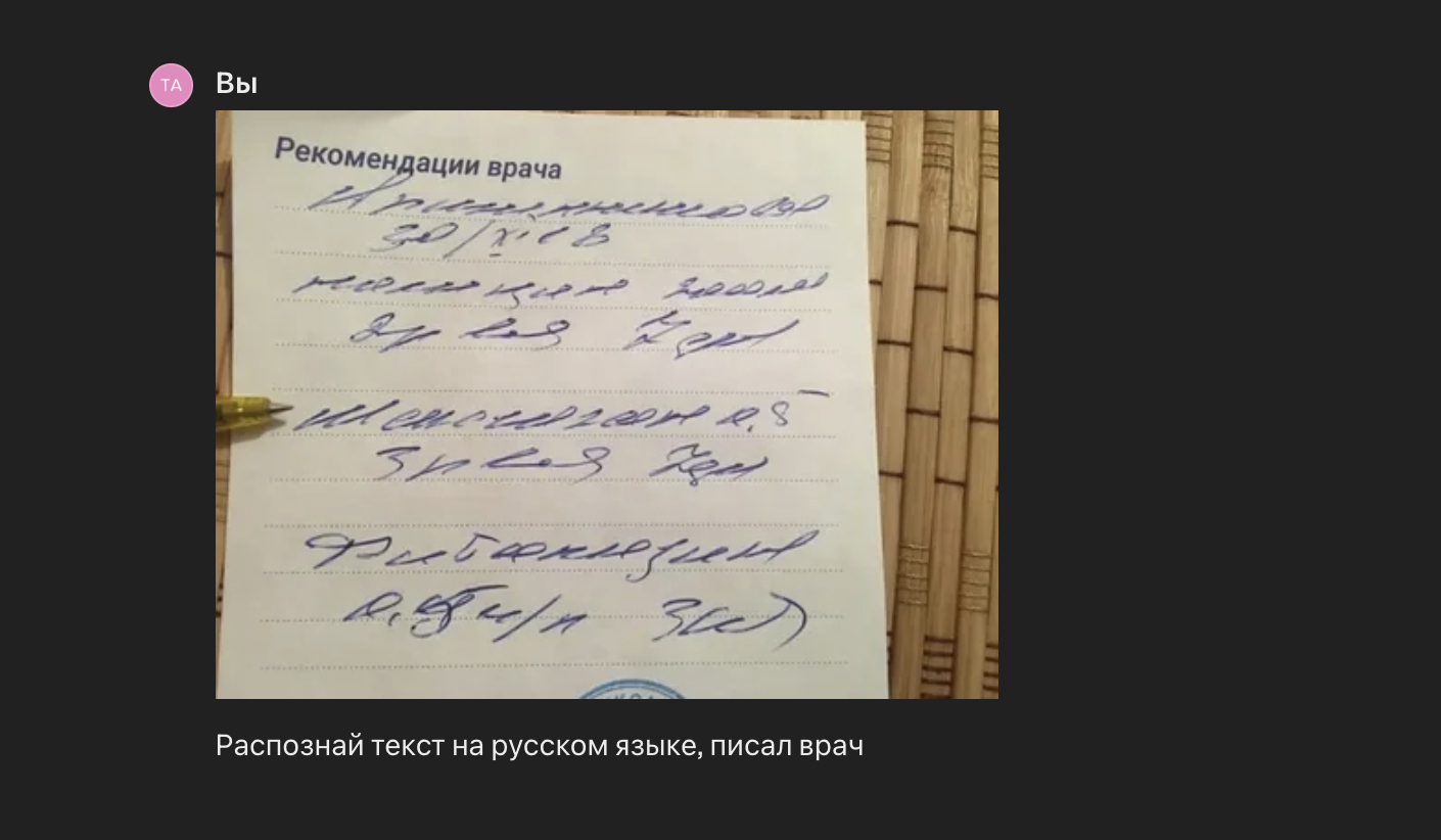 Попробуйте 😉. Вообще, если рецепты имеет схожую форму (а, особенно, содержание, правда вам это будет сложнее оценить), рекомендую сменить врача. Могу порекомендовать на следующем приёме культурно попросить врача написать рецепт более читаемо - это совершенно нормальная просьба, ничего оскорбительного в ней нет и за неё не бьют (как правило). Это форма записи назначений для провизора, она должна быть хорошо читаема и иметь однозначное содержание. Если такая просьба не помогла, то навестить глав. врача с просьбой разъяснить полученные на приёме назначения. Это тоже нормальная просьба, ведь от этого зависит ваше здоровье. Потому как если никто врачу об этом не сказал за всю его практику, он со временем ускорится в письме до второй космической, с поводом и без повода, чаще всего даже без злого умысла. Иногда с элементами фетишизма, как в случае записи в мед. карту, который я прикрепил. Согласитесь - не так много текста, чтобы не было возможности написать его доступным почерком.