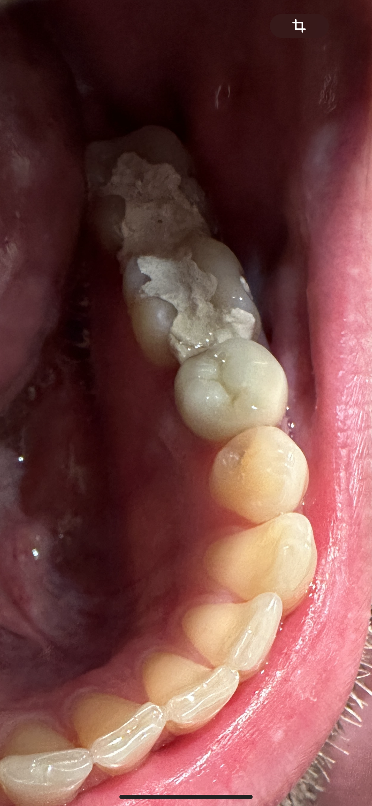 Постараюсь показать на фото в чем проблема. Когда я ходил с временными пломбами этот бугор был плавный, у меня четкое ощущение, что врач спилила его в процессе проверки контактов, потому что я ощущал запах "паленого зуба" когда она подпиливала пломбу. Я вообще не понимаю зачем доктор мне сточил этот плавный бугор мой родной.