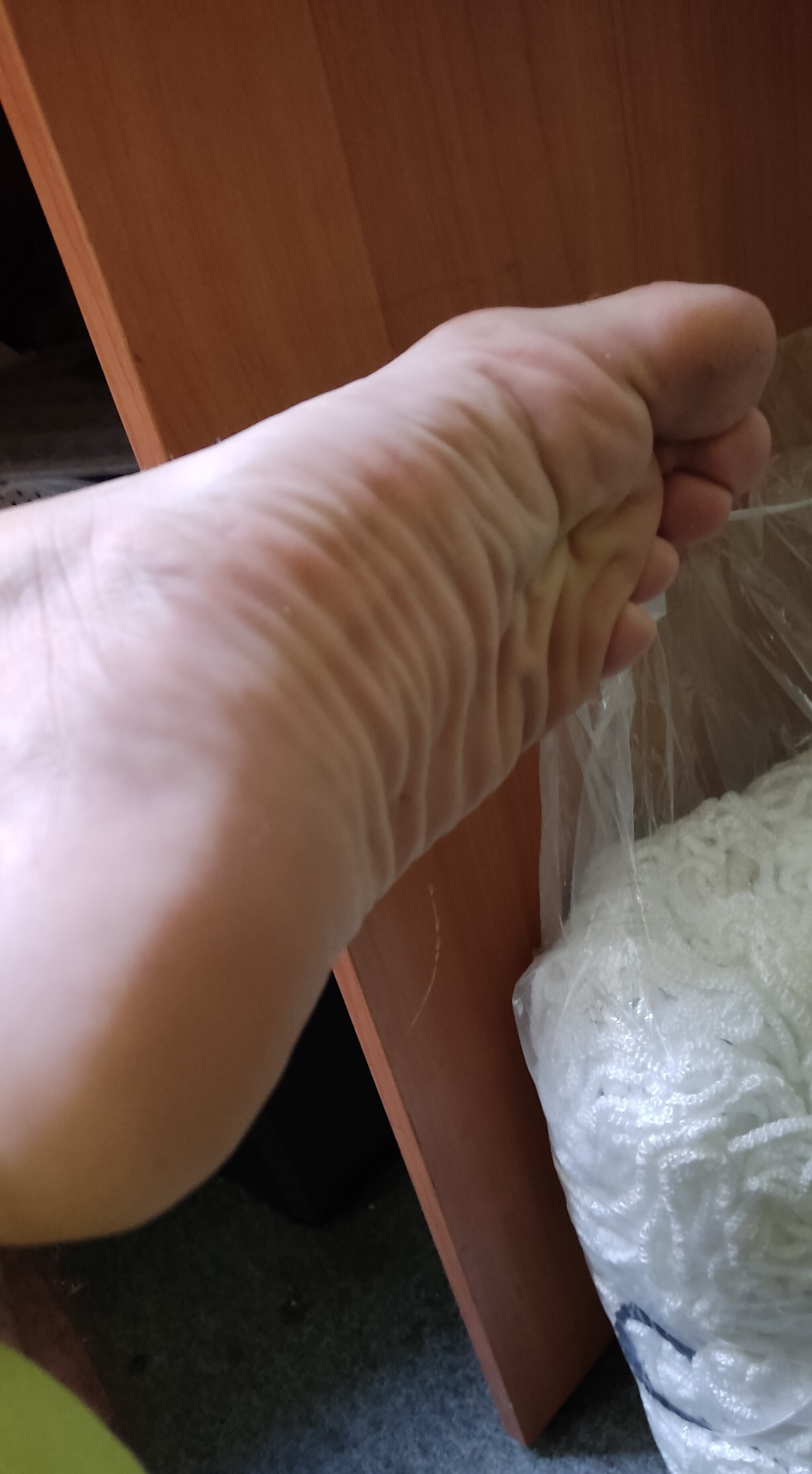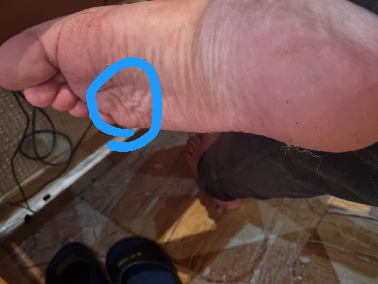 Пример - складок на моей стопе. У здорового человека без плоскостопия эти складки также будут, так что это способ определить вальгус - только при плоской стопе. А не признак заболевания.