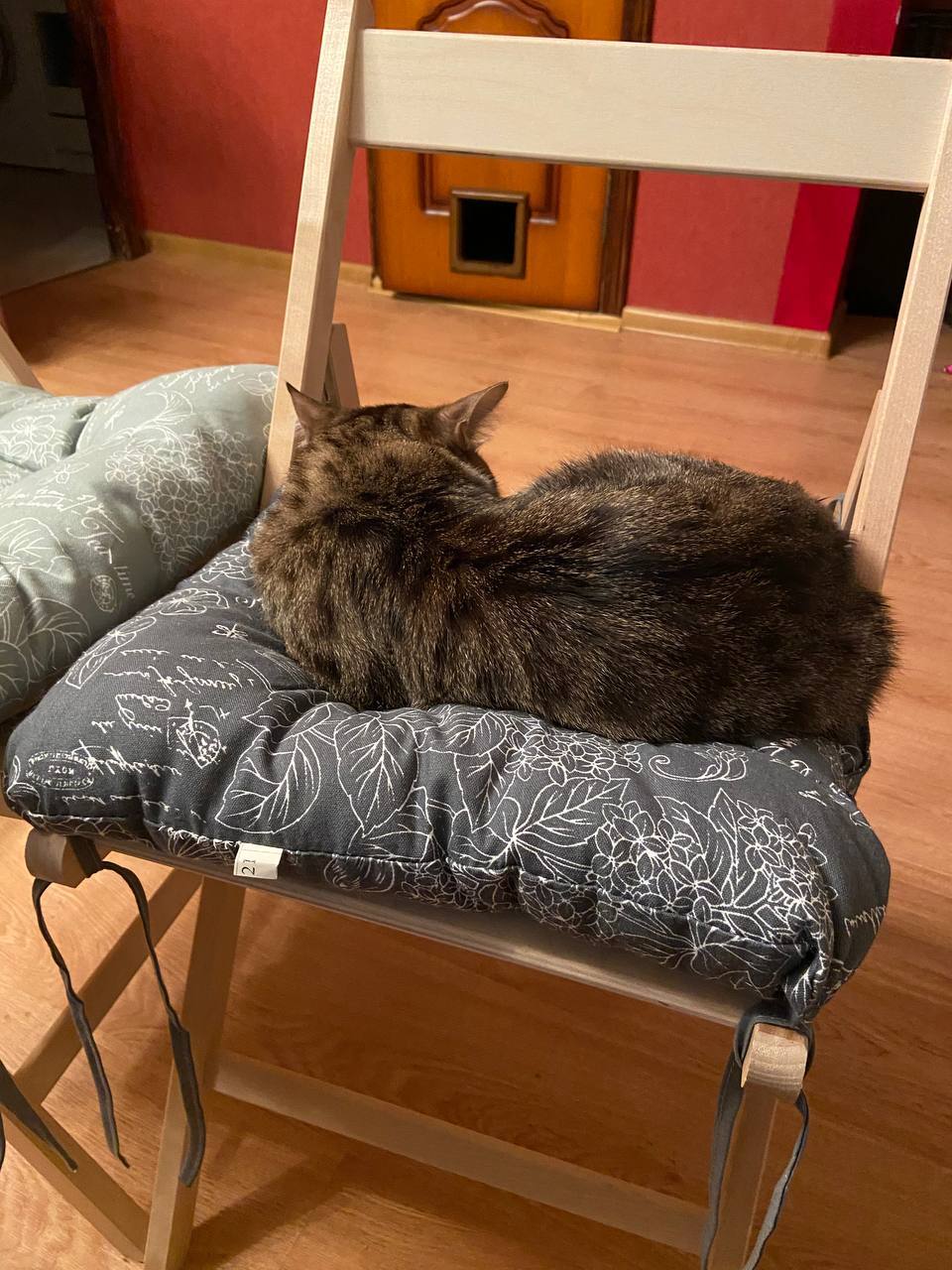 Сенегос же, мудрейший из двоих, выбрал иную тактику. Он устроился на коврике, где происходил ритуал, свернувшись клубком и излучая ауру непоколебимого спокойствия. Пусть хозяин пытается передвинуть его — это тоже часть испытания!