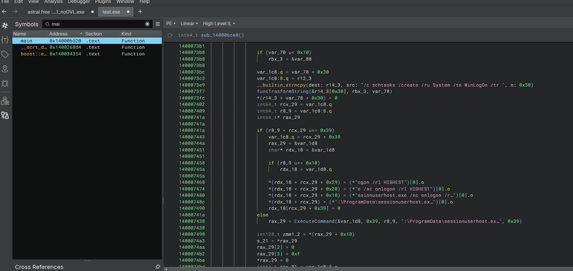 Хорошо, посмотрим что этот файл делает, откроем его в дизассемблере и перейдём в главную функцию, которая исполняется при запуске.