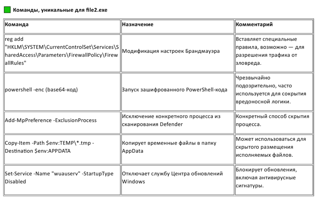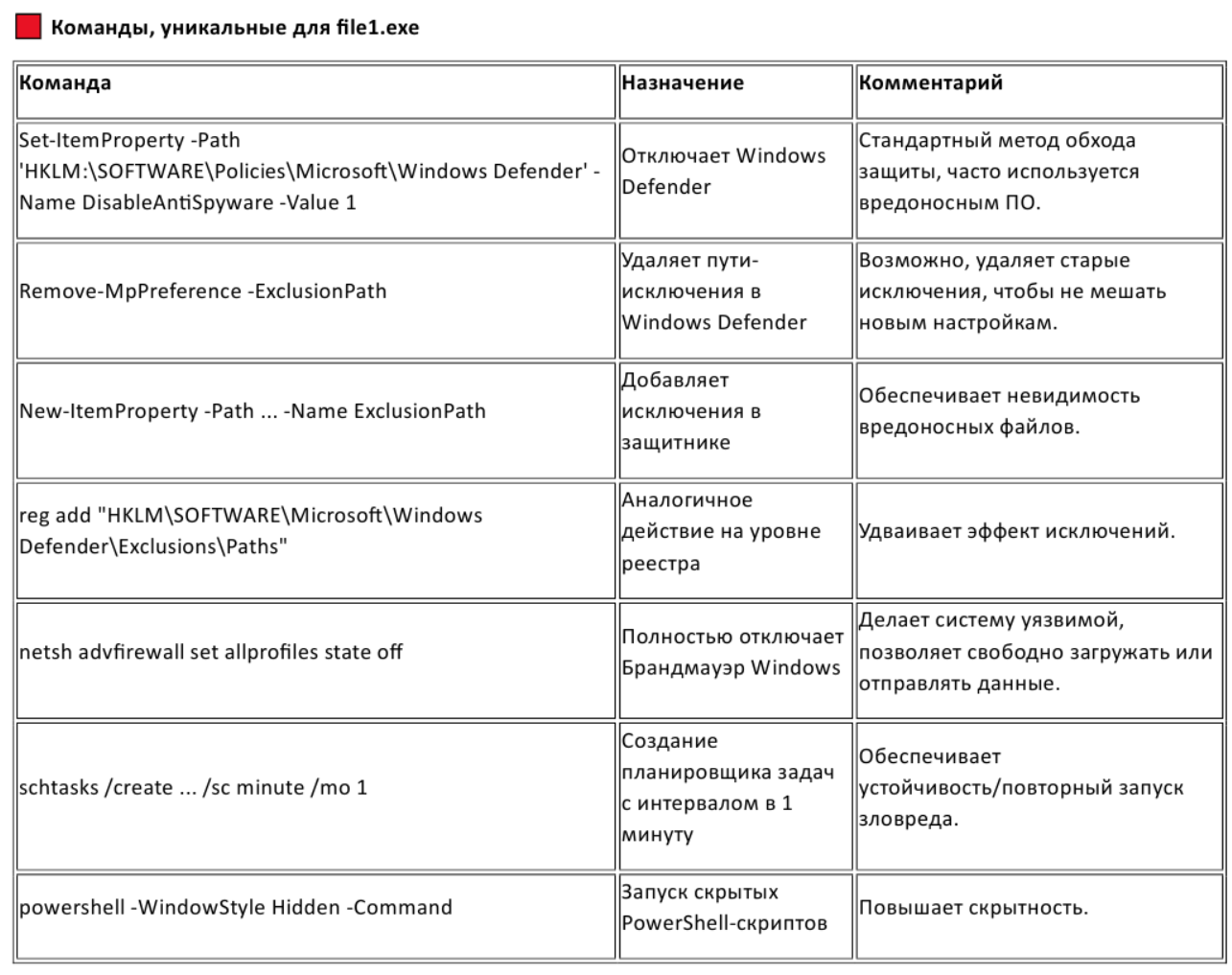 1. Запускается file1.exe с повышенными правами (администратор), что критично для выполнения всех следующих действий.