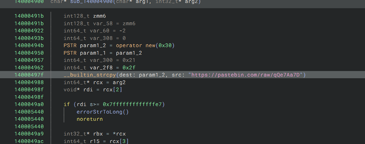 Продолжаем исследовать дальше, видим обращение к некоторому адресу https://pastebin[.]com/raw/qQe7Aa7D
