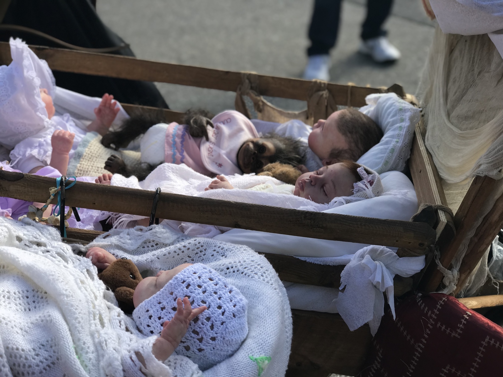 Сбоку у продавца на коляске вот такой вот младенец-уродец