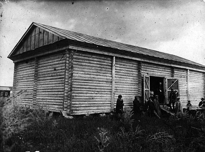 Главное здание в колхозе. Русские, алтайцы. Алтай, Шебалинский р-он (Ойротская АО Шебалиснкого аймака), первая четверть ХХ в.